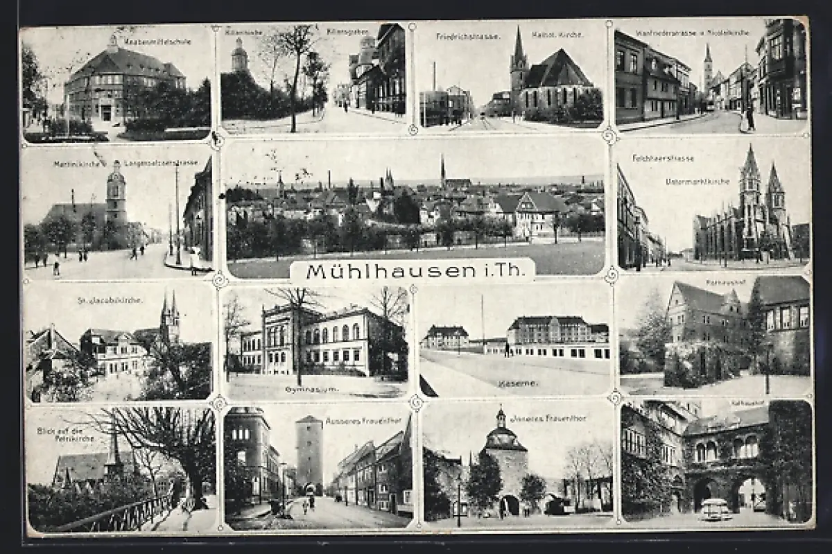 AK Mühlhausen /Thür., Teilansichten Petrikirche, Untermarktkirche und Jakobikirche