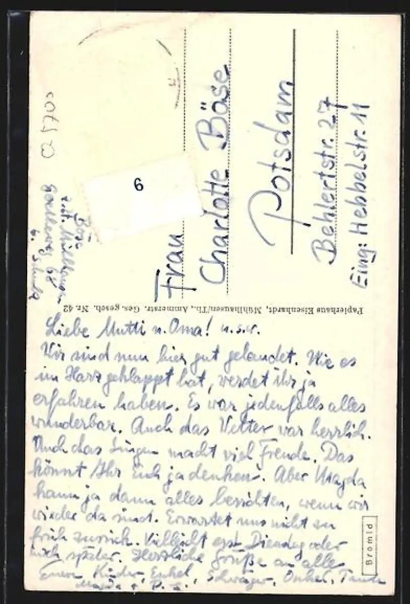 alte Ansichtskarte, gelaufen, Briefmarke entfernt, rückseitig Klebe- und Papierreste, guter Zustand
