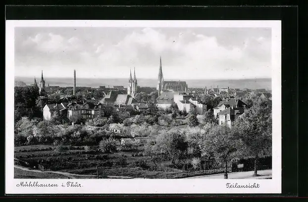 AK Mühlhausen i. Thür., Teilansicht mit Kirche