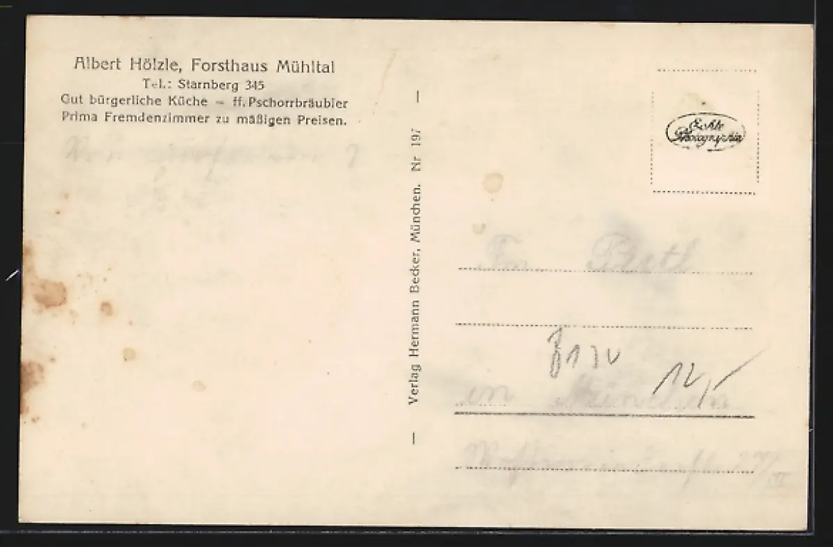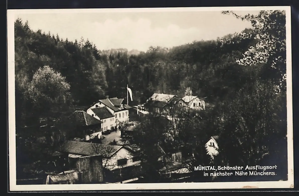 AK Mühltal /Starnberg, Forsthaus Mühltal und Ort aus der Vogelschau