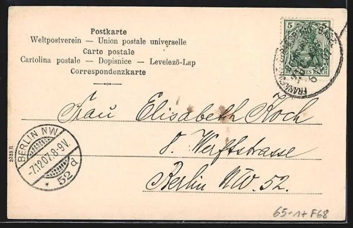 alte Ansichtskarte, gelaufen 1907, Eckknick oben re., guter Zustand