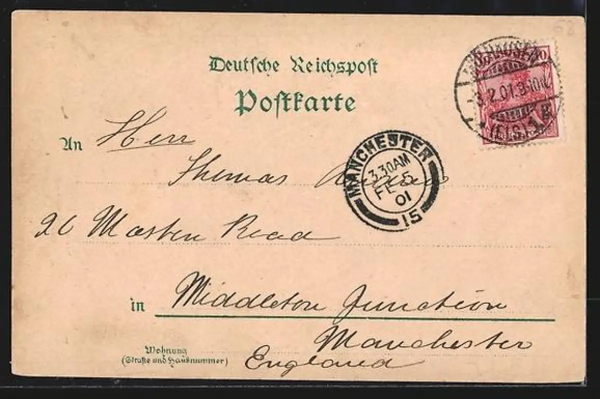 alte Ansichtskarte, gelaufen 1901, guter Zustand