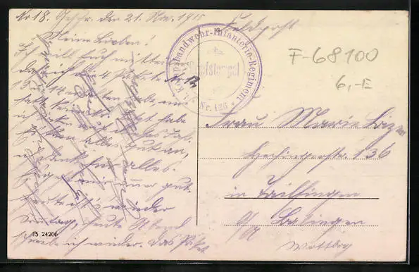 gelaufen als Feldpost 1915, guter Zustand