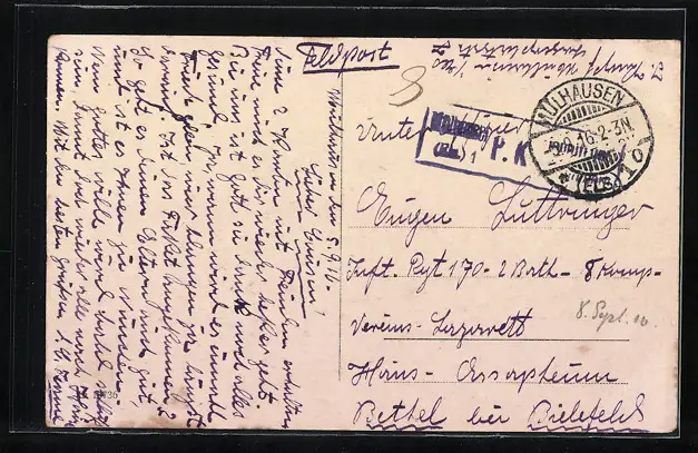 gelaufen 1916, Bugspur unten re., Briefmarke entfernt e li., guter Zustand