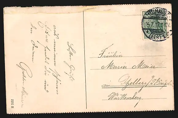 gelaufen 1913, rückseitig Klebe- und Papierreste, guter Zustand