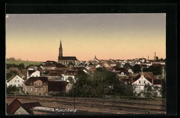 AK Münchberg, Ortspanorama mit Kirche