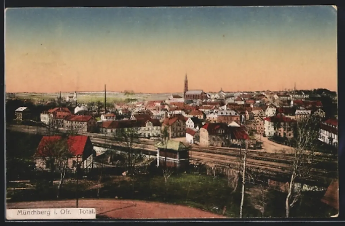 AK Münchberg i. Ofr., Ortsansicht aus der Vogelschau