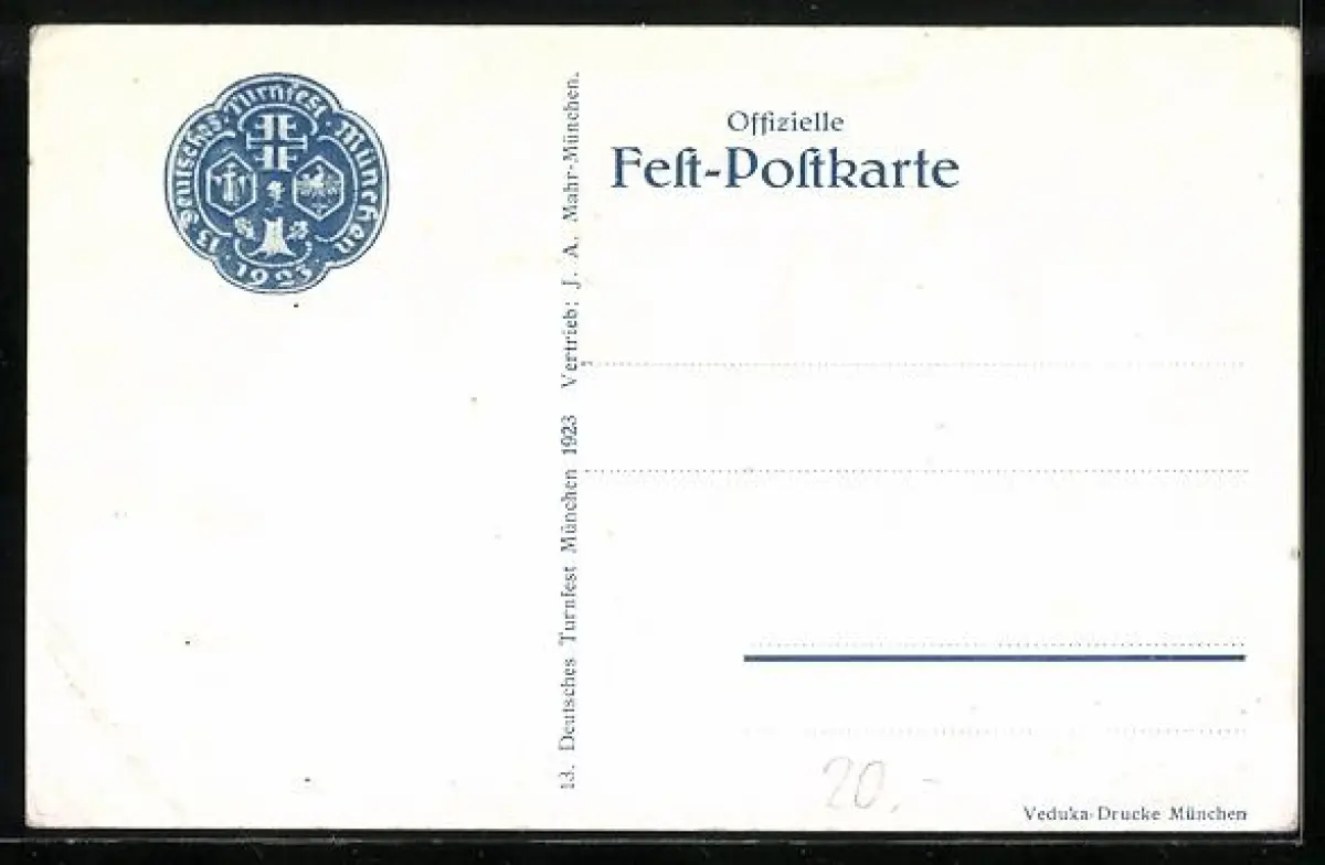 AK München, 13. Deutsches Turnfest 1923, Fahnenträger zu Pferd, Münchner Kindl