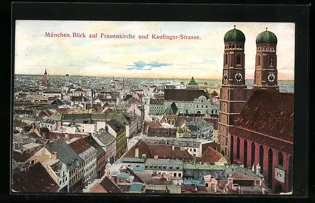 AK München-Au, Blick auf Frauenkirche und Kaufinger-Strasse
