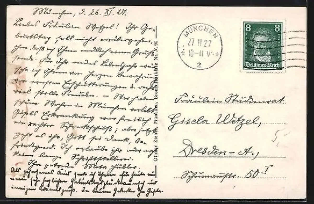 alte Ansichtskarte, gelaufen 1927, Stempelspur, guter Zustand