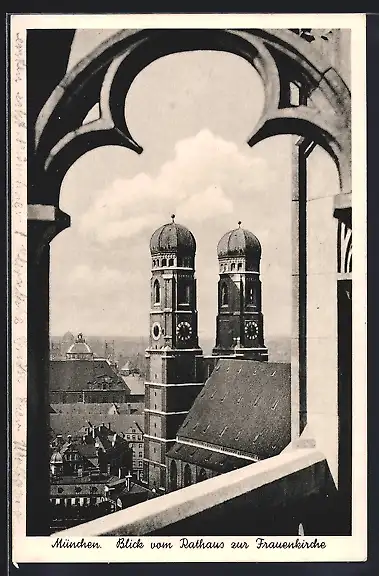 AK München, Blick vom Rathaus auf die Frauenkirche