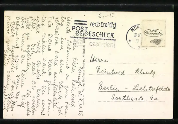 alte Ansichtskarte, gelaufen, Briefmarke entfernt, guter Zustand