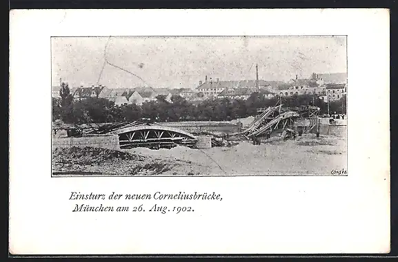 AK München, Einsturz der neuen Corneliusbrücke am 26. August 1902
