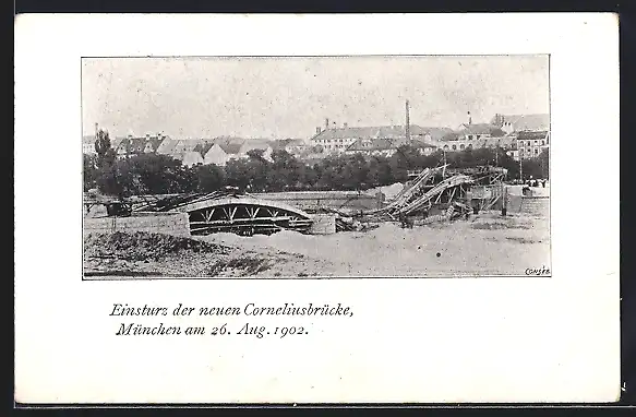 AK München, Einsturz der neuen Corneliusbrücke am 26. August 1902