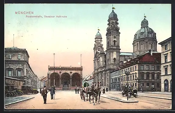 AK München, Feldherrenhalle & Theatiner Hofkirche