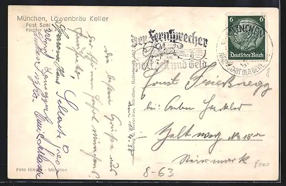 AK München, Festsaal im Restaurant Löwenbräu-Keller