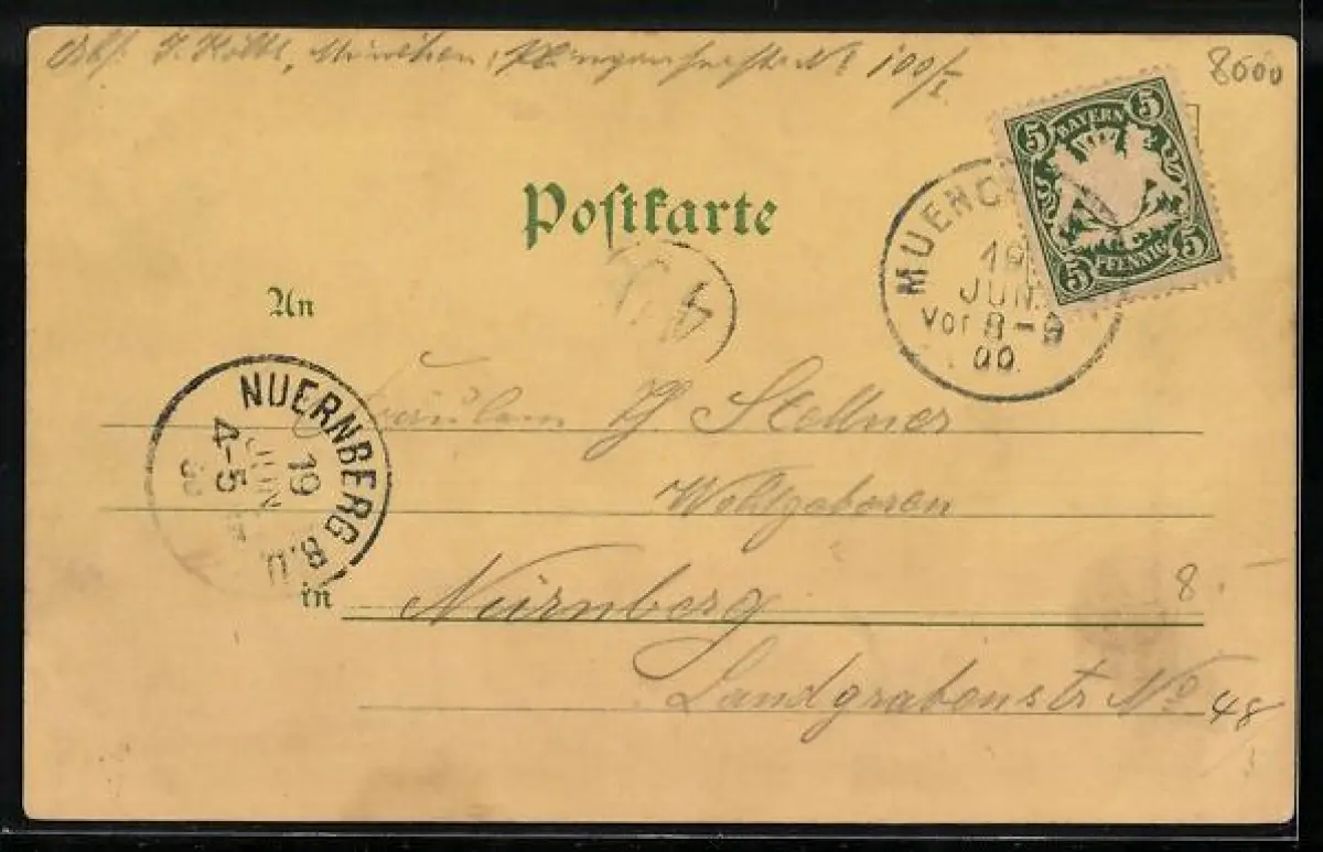 alte Ansichtskarte, gelaufen 1900, guter Zustand