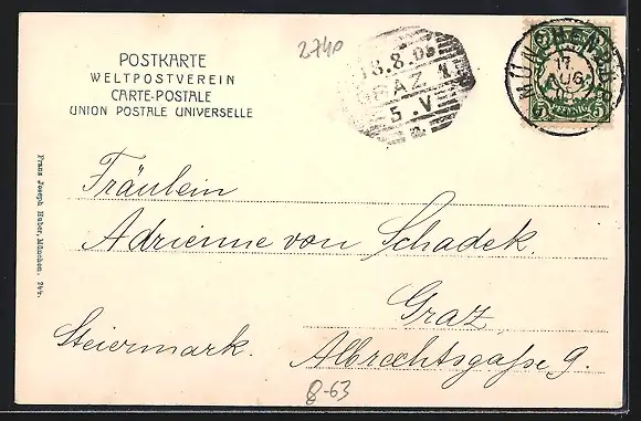 alte Ansichtskarte, gelaufen 1905, Stempelspur, guter Zustand