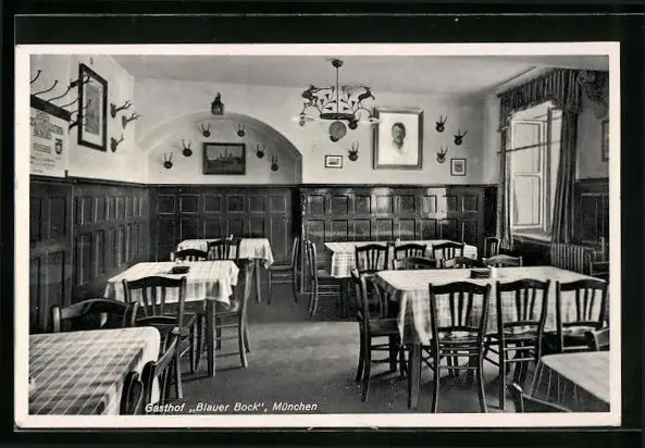 AK München, Gasthof Blauer Bock, Innenansicht