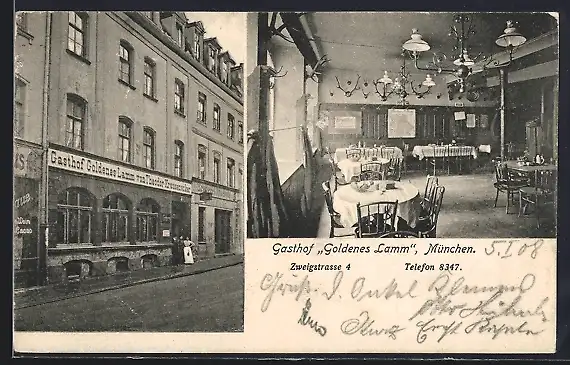 AK München, Gasthof Goldenes Lamm, Zweigstrasse 4, Speisesaal