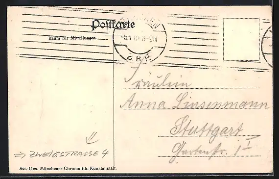 alte Ansichtskarte, gelaufen, Bugspur re. mittig, Briefmarke entfernt, guter Zustand