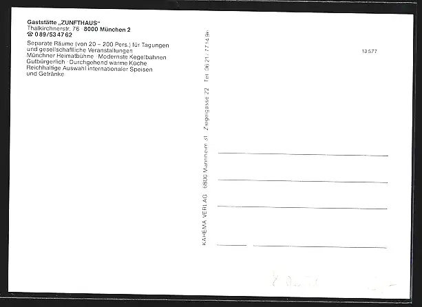 AK München, Gasthof Zunfthaus, Thalkirchnerstrasse 76, Kegelbahn