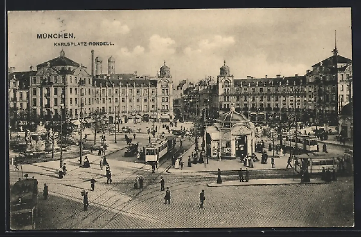 AK München, Karlsplatz-Rondell mit Strassenbahn