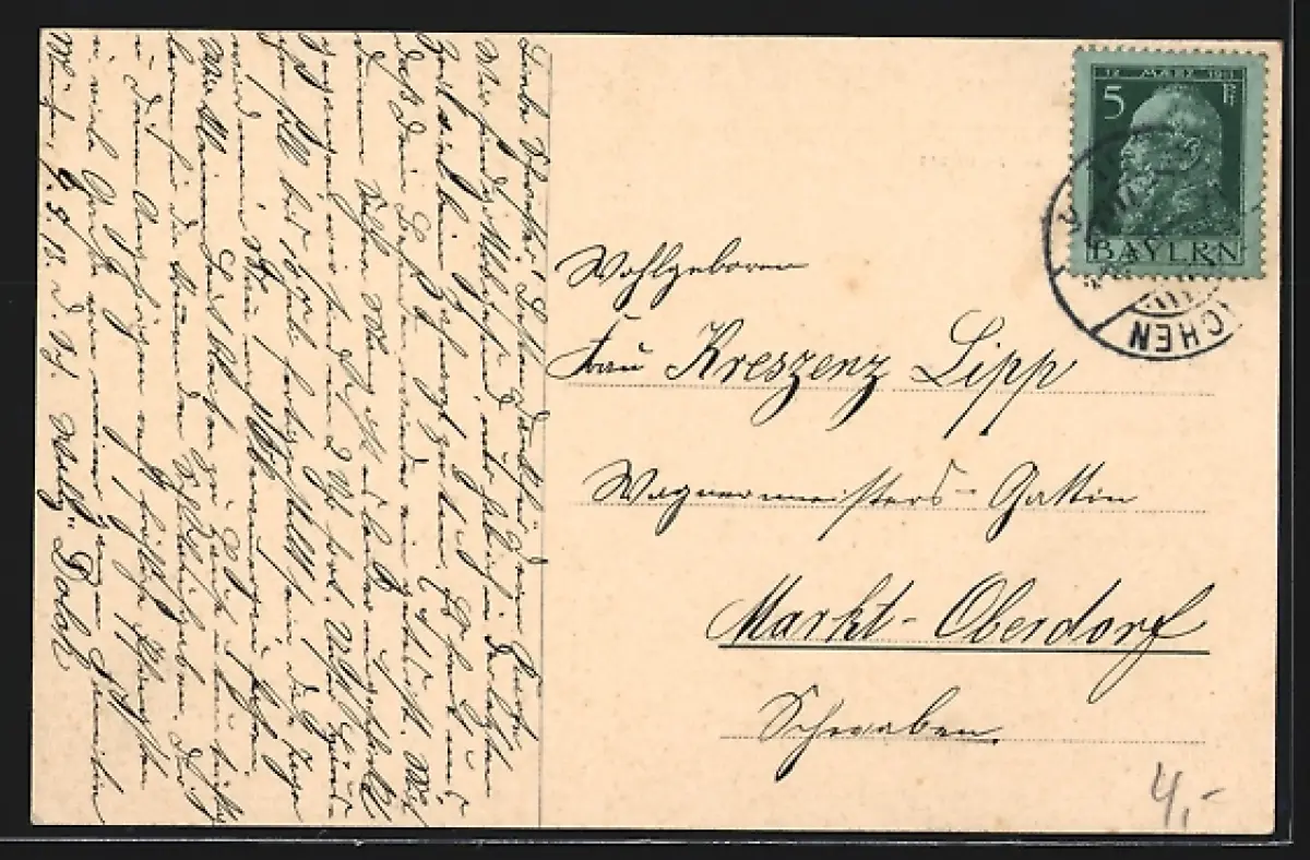 alte Ansichtskarte, gelaufen, Stempelspur, guter Zustand