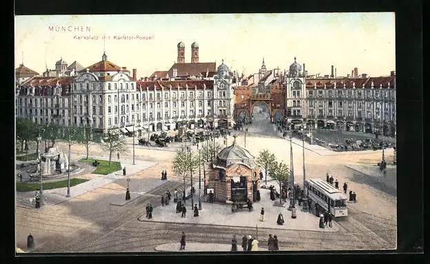 AK München, Karlsplatz mit Karlstor-Rondell und Strassenbahn