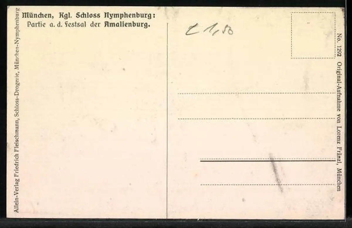 AK München, Königliches Schloss Nymphenburg, Partie a. d. Festsal der Amalienburg