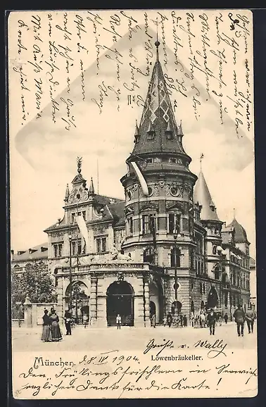 AK München, Löwenbräu-Keller, Aussenansicht mit Gästen