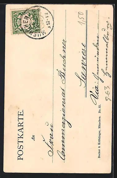 alte Ansichtskarte, gelaufen, Eckknicke re. unten und li. oben, Einriss li. oben, kleiner Einriss re. oben, guter Zustand