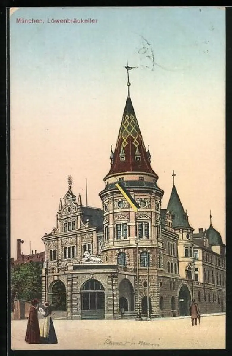 AK München, Löwenbräu-Keller und Strasse