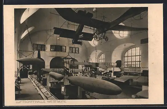 AK München, Luftschiffhalle - Westseite des Deutschen Museums, Zeppelin