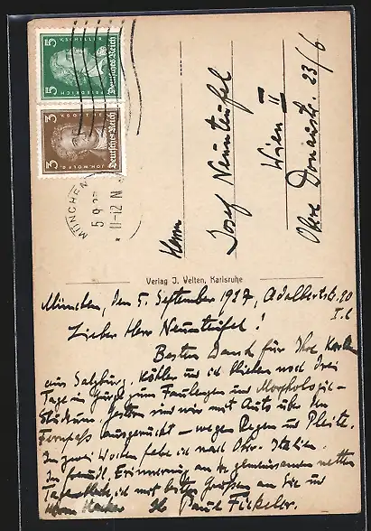alte Ansichtskarte, gelaufen 1927, guter Zustand