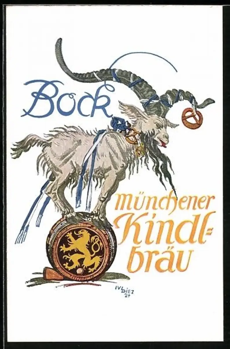 AK München, Münchner Kindlbräu, Bock auf einem Fass, Brauerei-Werbung