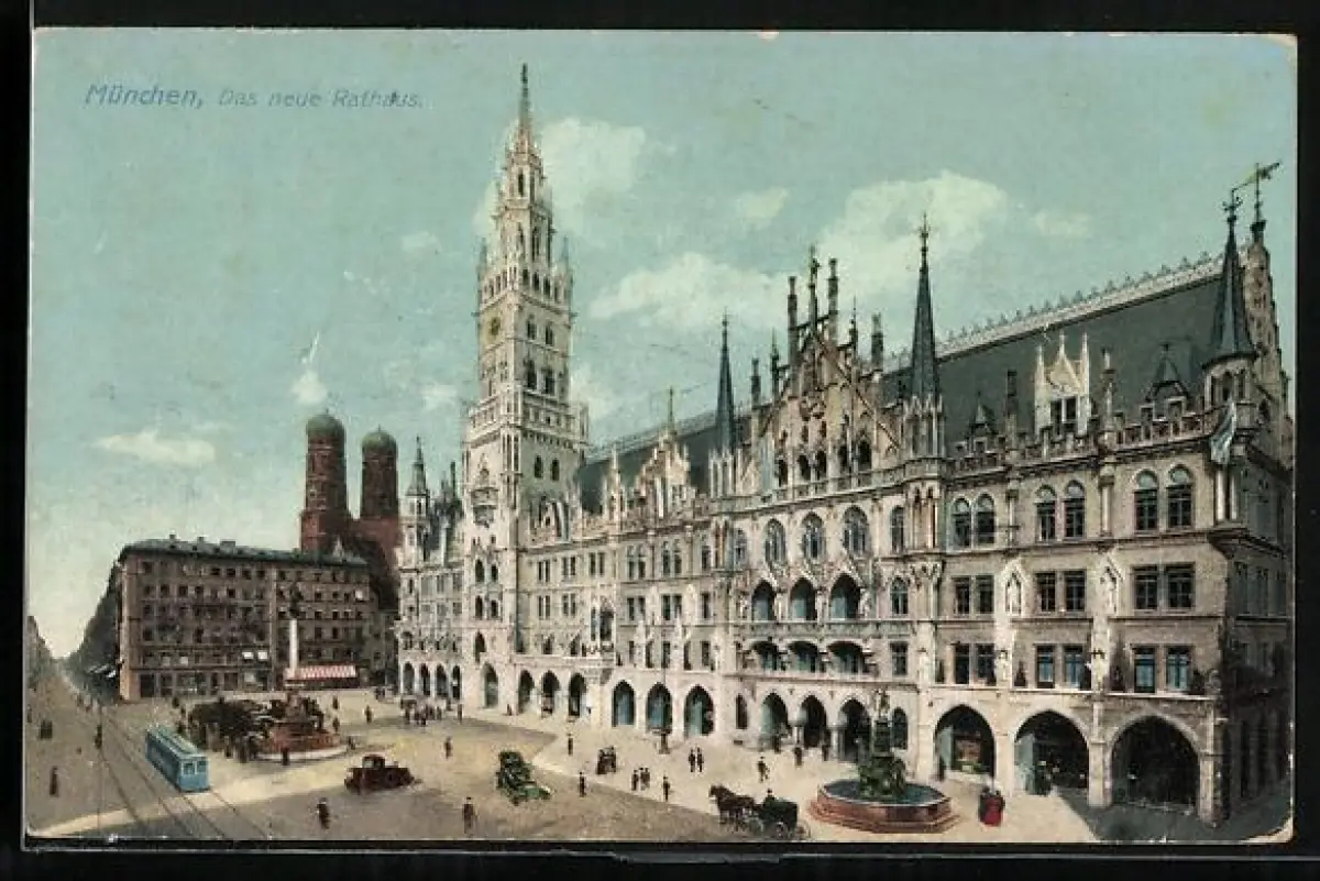 AK München, Neues Rathaus, Strassenbahn