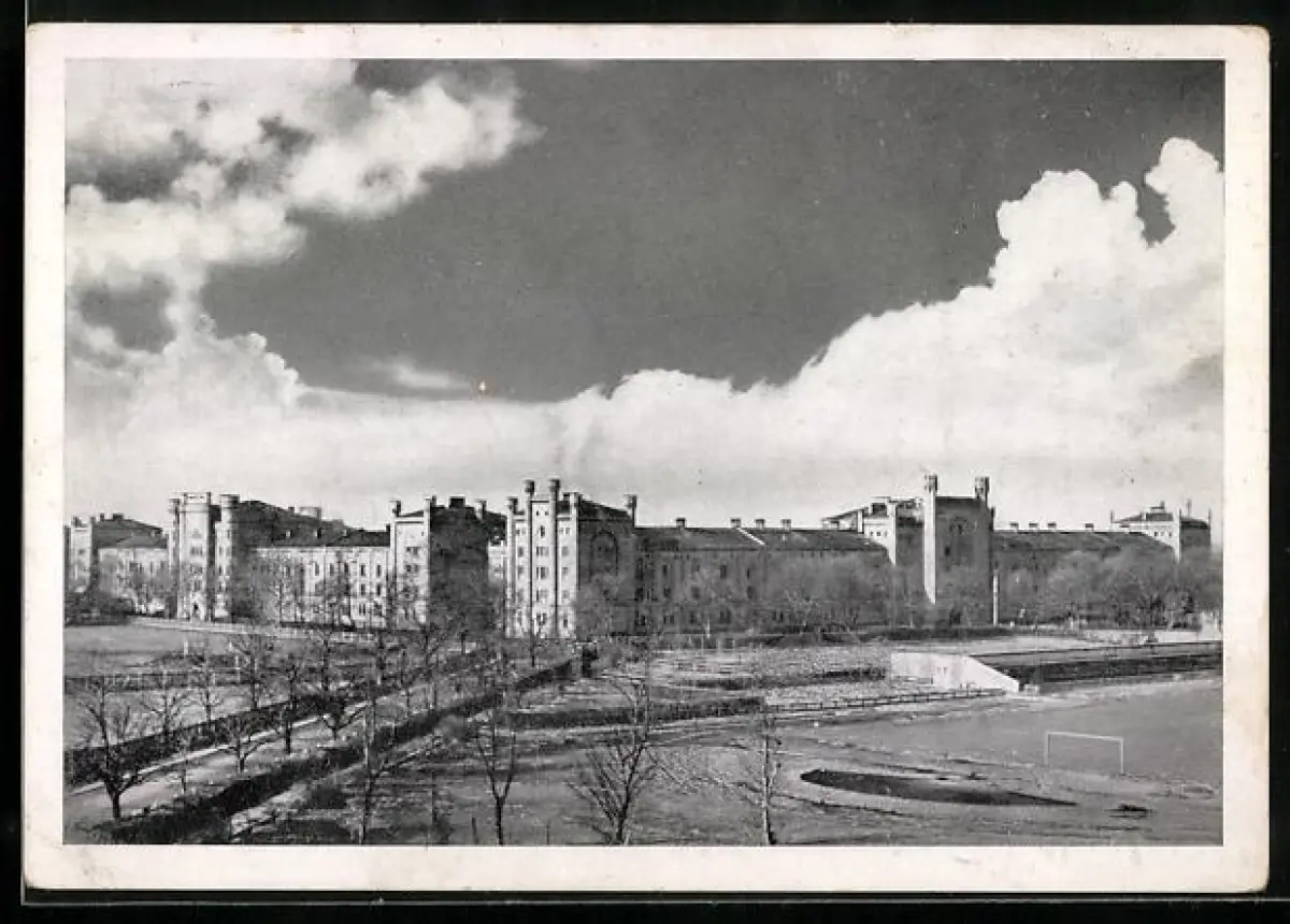 AK München-Neuhausen, Max II.-Kaserne mit Sportplatz