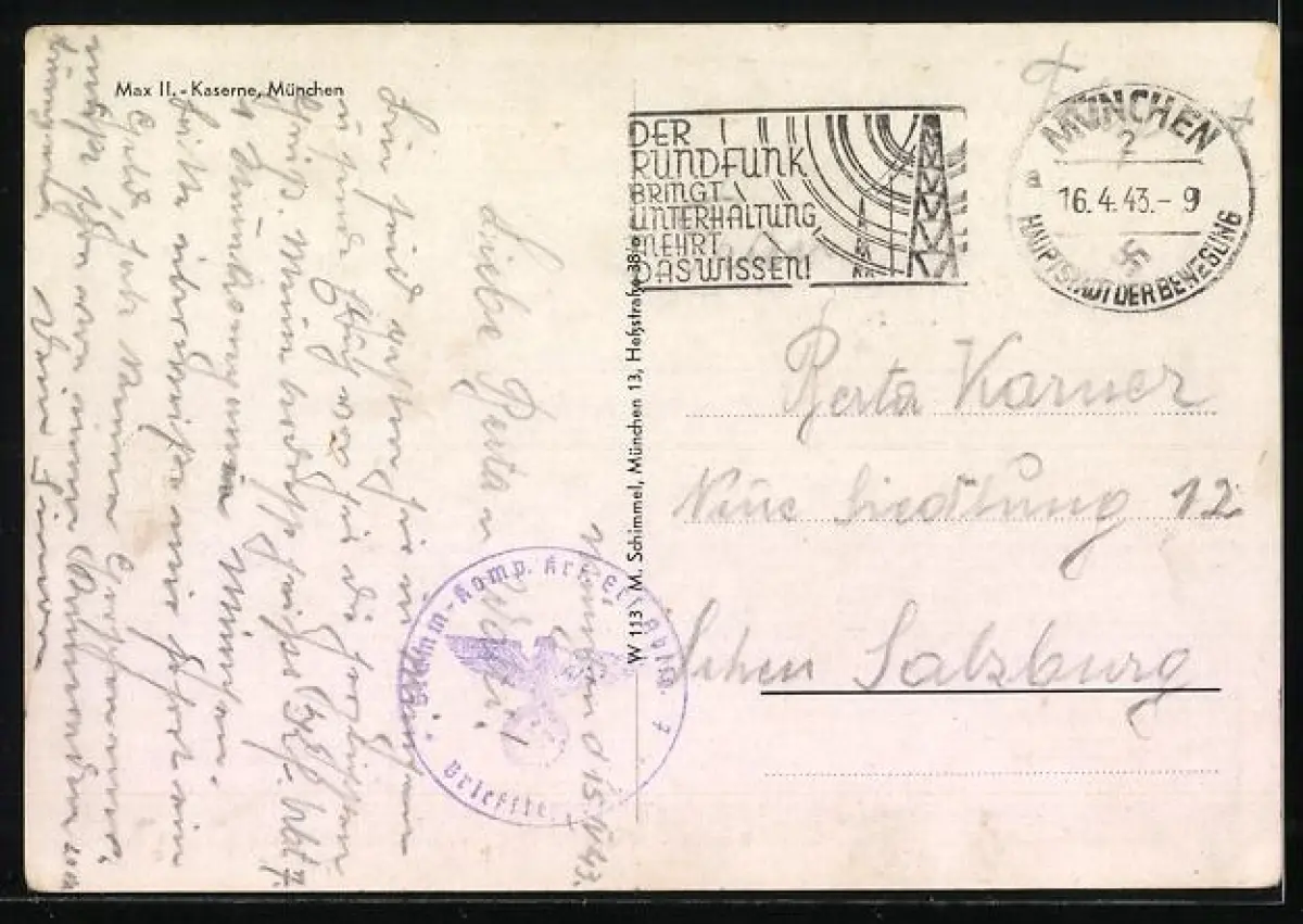 alte Ansichtskarte, gelaufen 1943 als Feldpost, guter Zustand