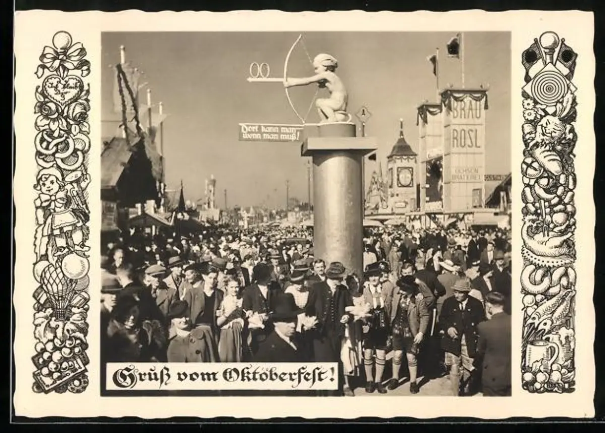 AK München, Oktoberfest, Gasthaus Brau-Rosl und Denkmal