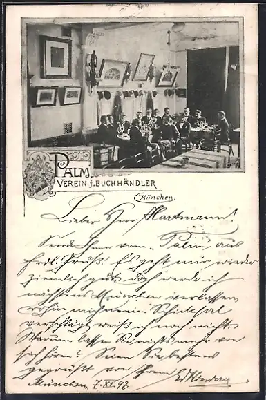 AK München, Palm, Verein j. Buchhändler, Vereinsmitglieder im Restaurant