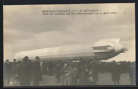AK München, Reichsluftschiff Z I nach der Landung auf dem Oberwiesenfeld 1909