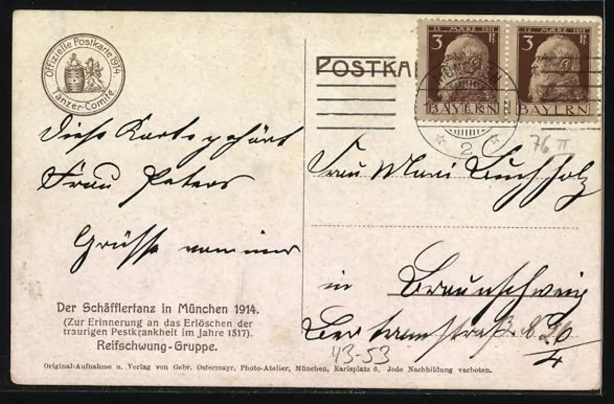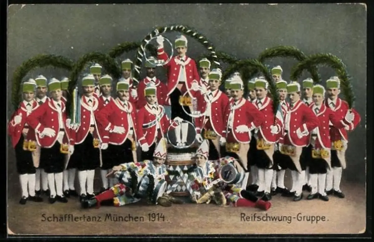 AK München, Reifschwung-Gruppe auf dem Schäfflertanz 1914
