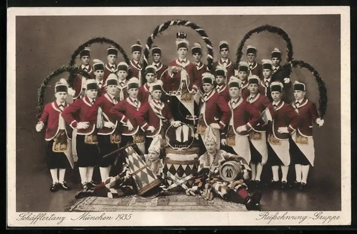 AK München, Reifschwung-Gruppe der Schäfflertänzer, Volkstanz