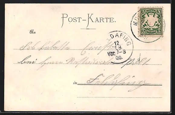 alte Ansichtskarte, gelaufen 1900, Stempelspur, guter Zustand