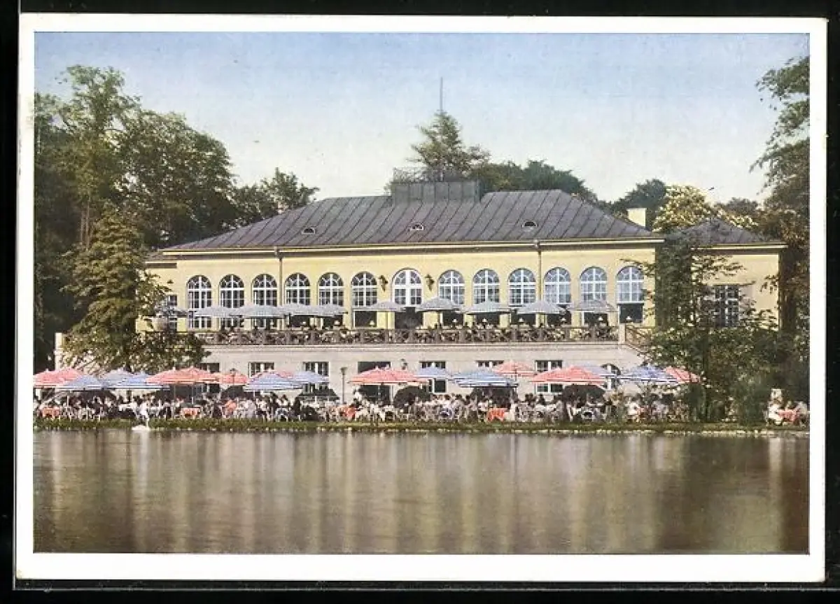 AK München-Schwabing, Gasthof Seehaus Kleinhesselohe, Englischer Garten