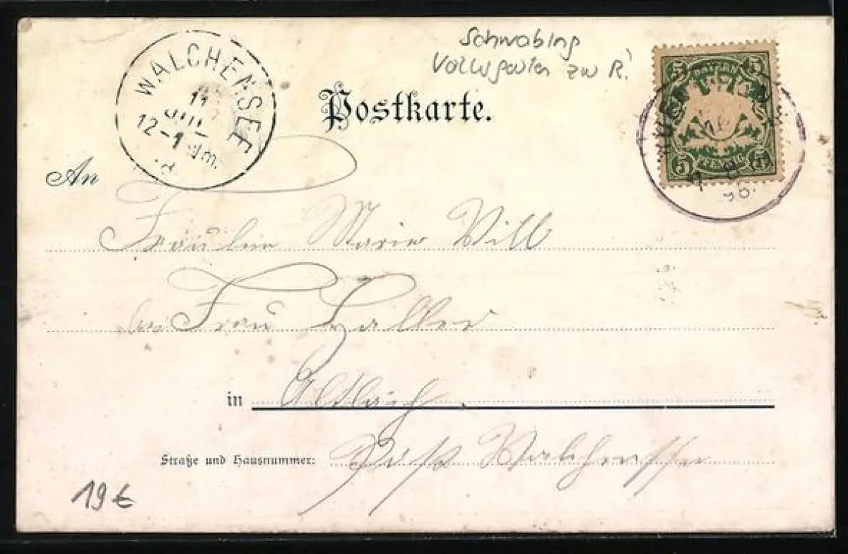 gelaufen 1898, Eckknick oben re. u. unten li., guter Zustand