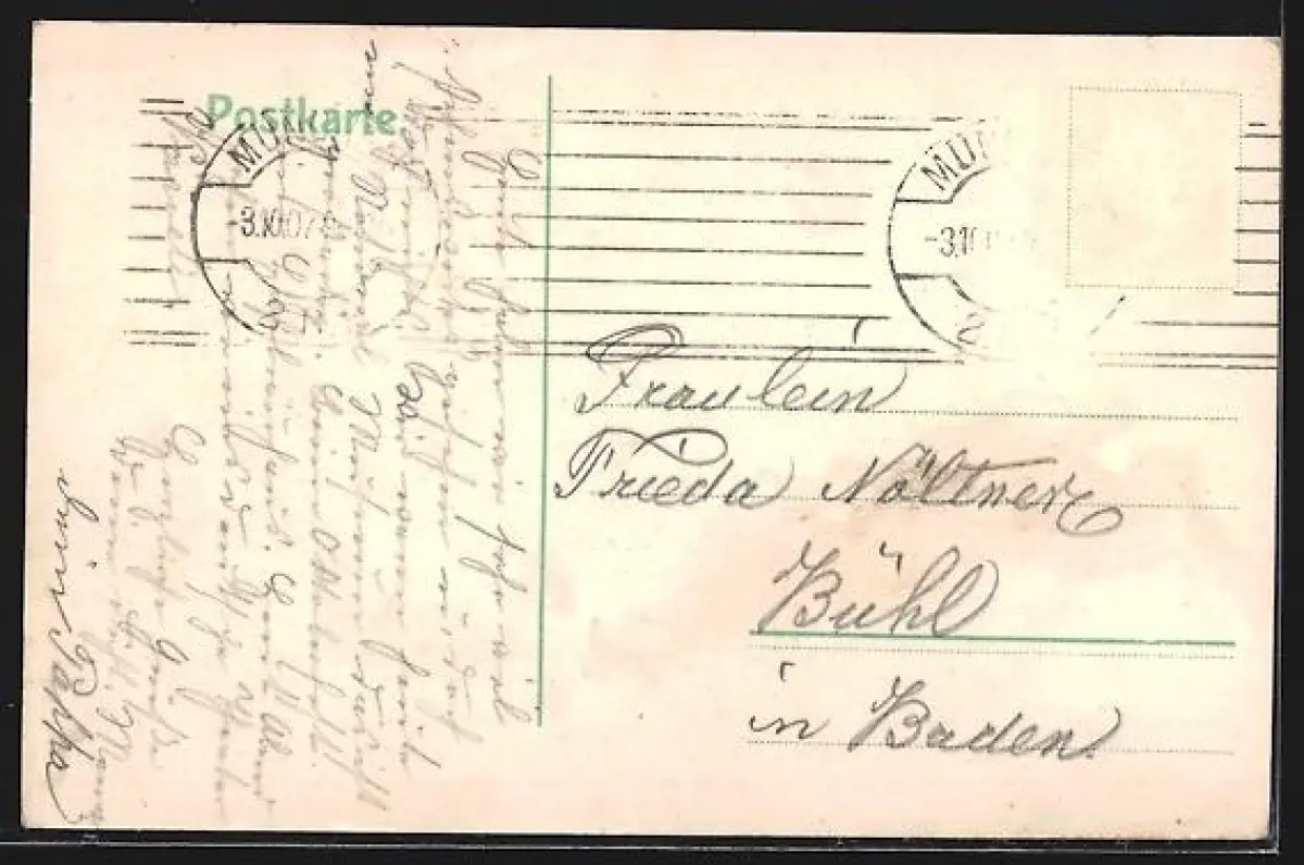 alte Ansichtskarte, gelaufen 1907, Briefmarke entfernt, guter Zustand