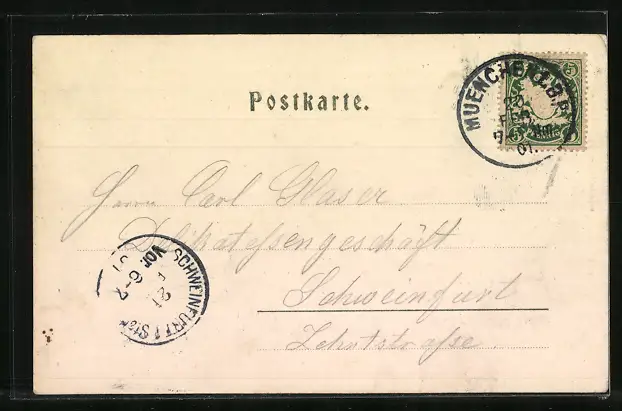 alte Ansichtskarte, gelaufen 1901, Eckknick oben li., guter Zustand