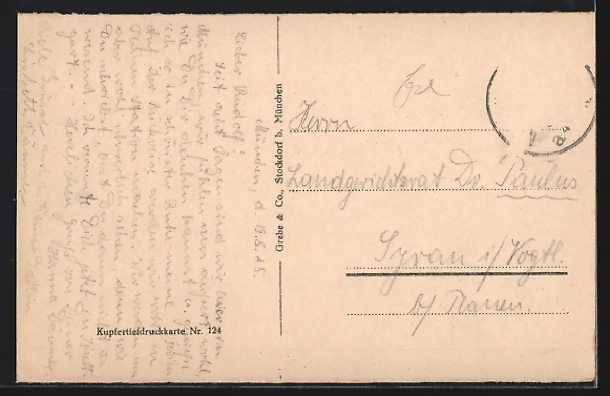 alte Ansichtskarte, gelaufen 1915, Briefmarke entfernt, rückseitig Oberflächenschaden, aus Leporello, guter Zustand